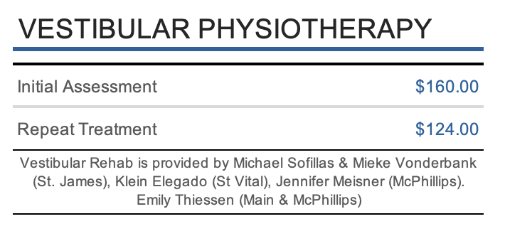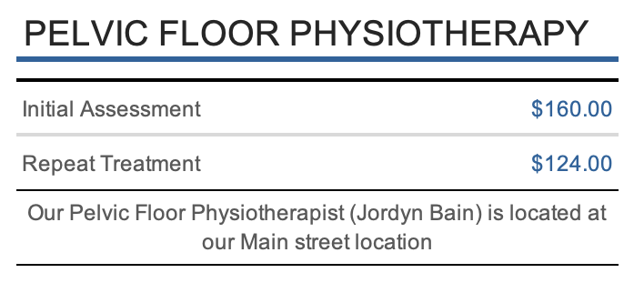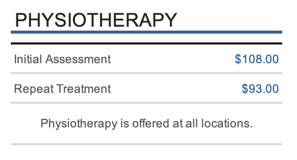 Scroll through our costs of the extensive rehabilitation services offered at D’Arcy Bain Physiotherapy.